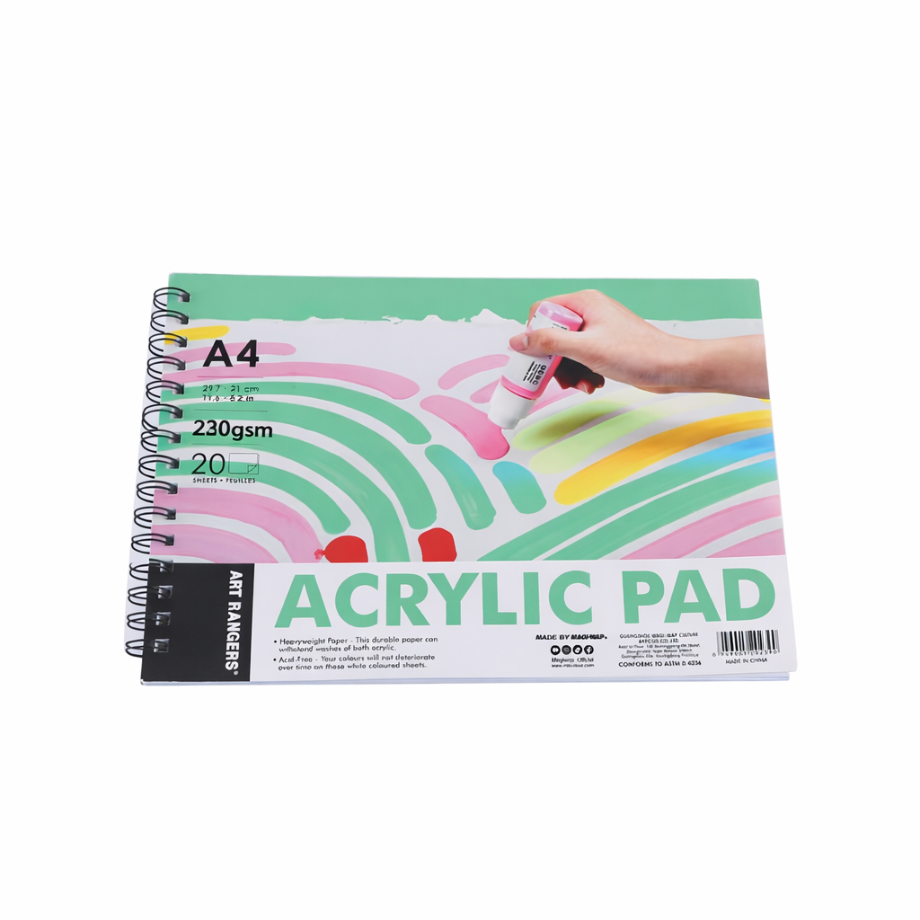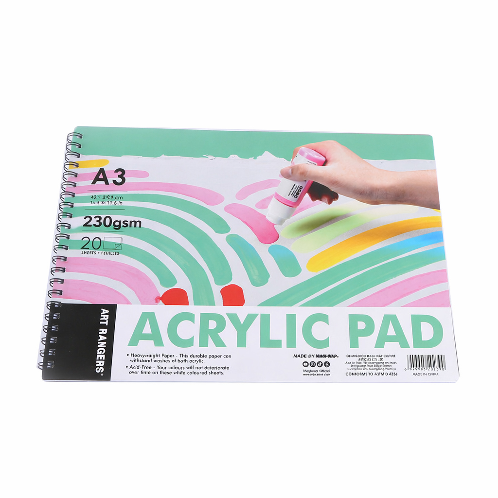 Альбом для акриловой живописи A3 с плотной бумагой 230 г/м². 20 листов, устойчива к влаге и многослойной покраске. Подходит для художников, студентов и детей. Идеален для акрила и смешанных техник