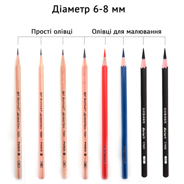 Совместимые карандаши: 6–8 мм (графитные, цветные)
