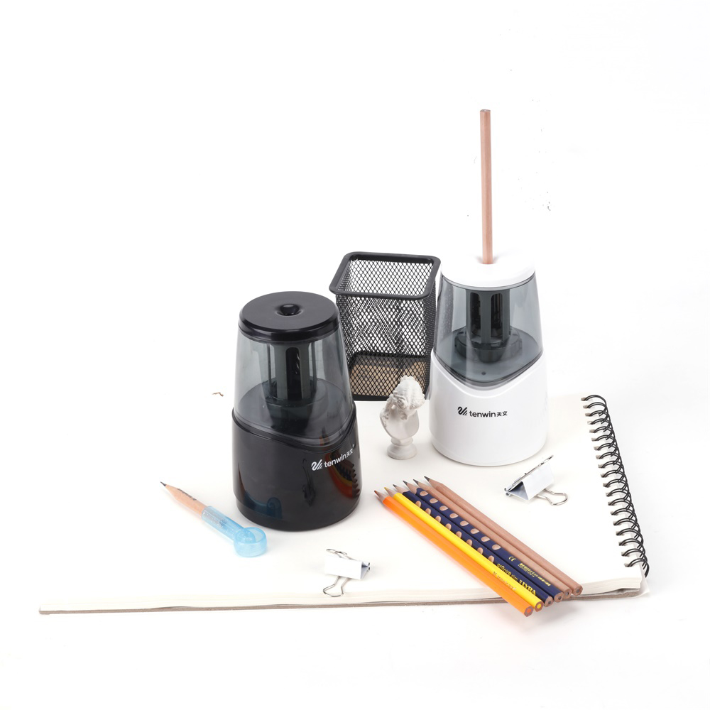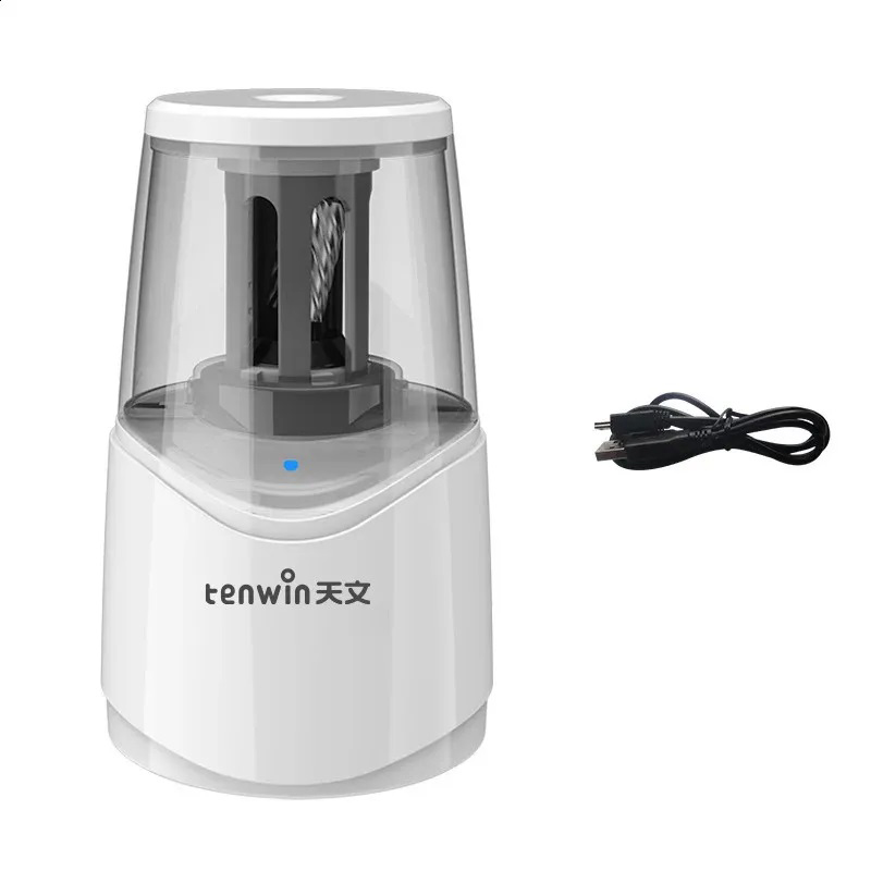 Аккумуляторная электроточилка для карандашей TENWIN 8010 — быстрая, безопасная и мощная. Заточка за 3 секунды, автоостановка, сменный нож, до 300 заточек без подзарядки