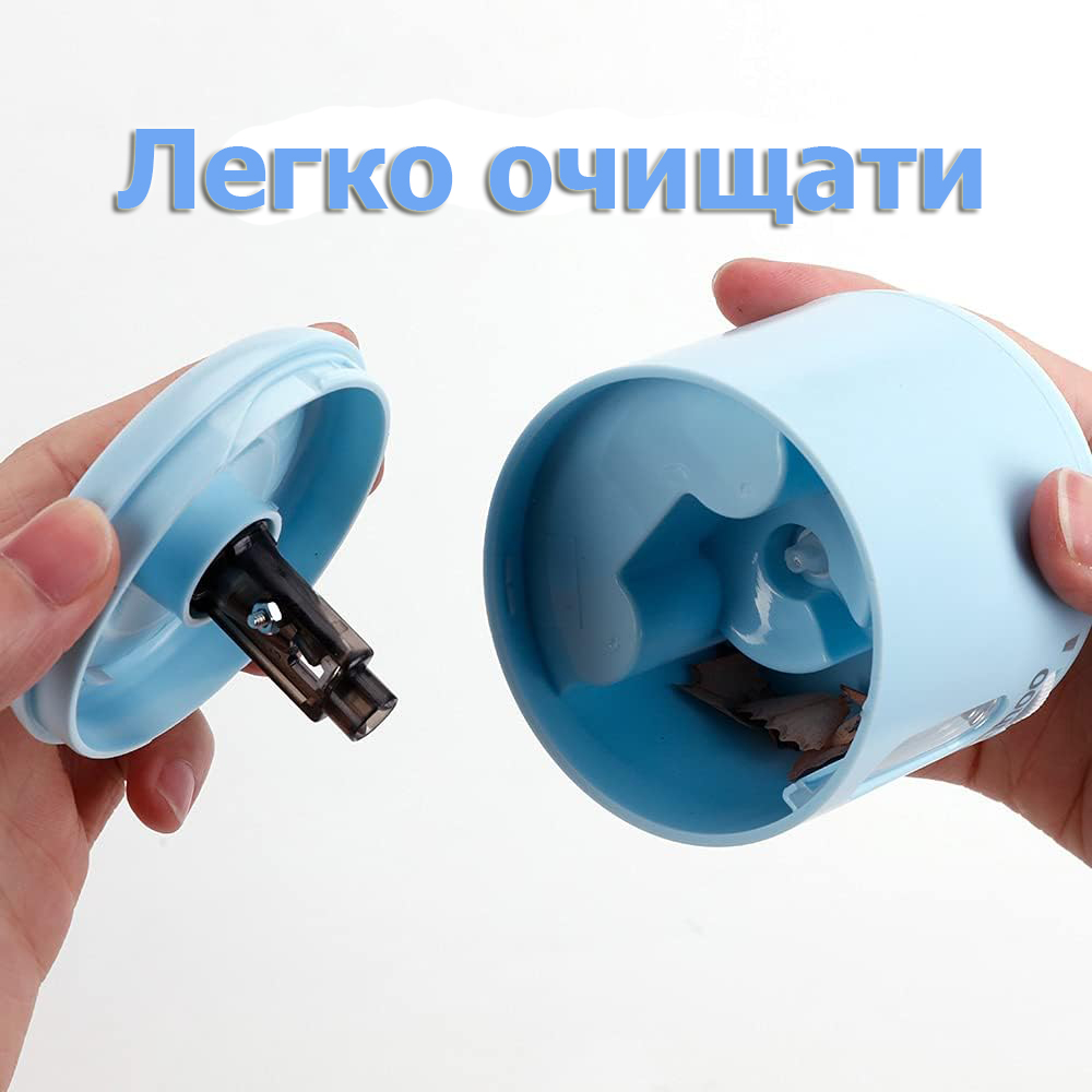 Точилка работает быстро — заточка занимает всего 4 секунды. Прозрачный контейнер позволяет контролировать уровень наполнения, а корпус из ударопрочного пластика обеспечивает долговечность.
