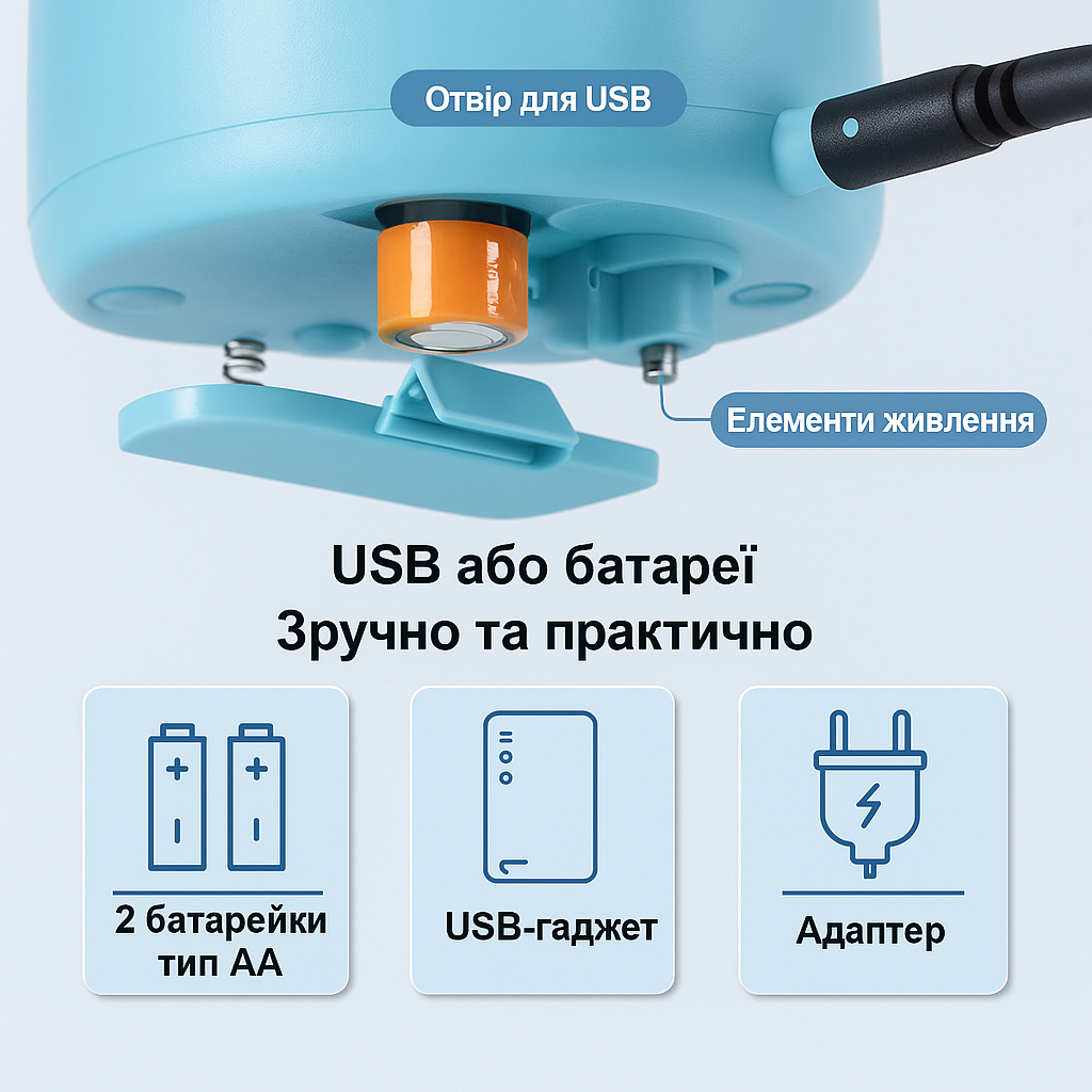 Питание от элементов питания типа АА (2 шт) / от USB или от сети переменного тока