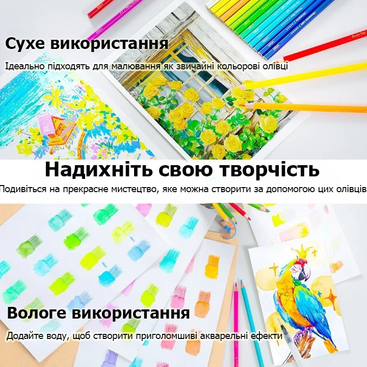 Двойное использование: рисуйте как обычными карандашами или создавайте акварельные эффекты.