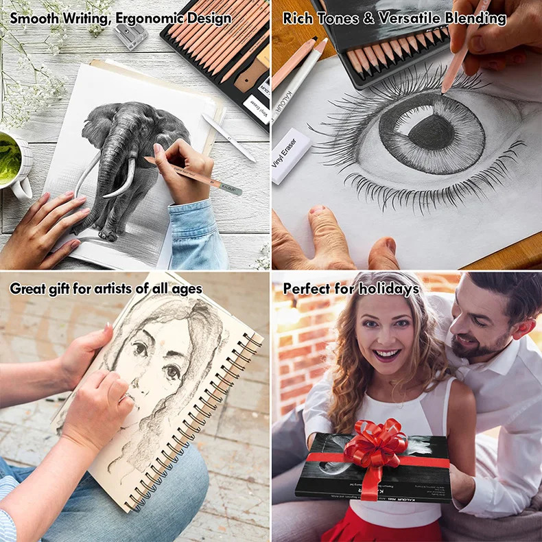 KALOUR Sketching & Drawing Set — прекрасный выбор для творческих людей любого возраста. Подходит для учебы, хобби и работы, а также станет отличным подарком к празднику: День рождения, Рождество, Новый год или любая другая важная дата.