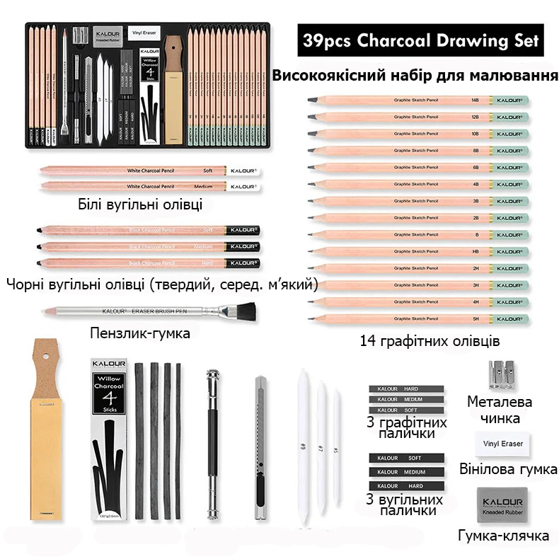Набор для рисунка и эскизов KALOUR из 39 предметов