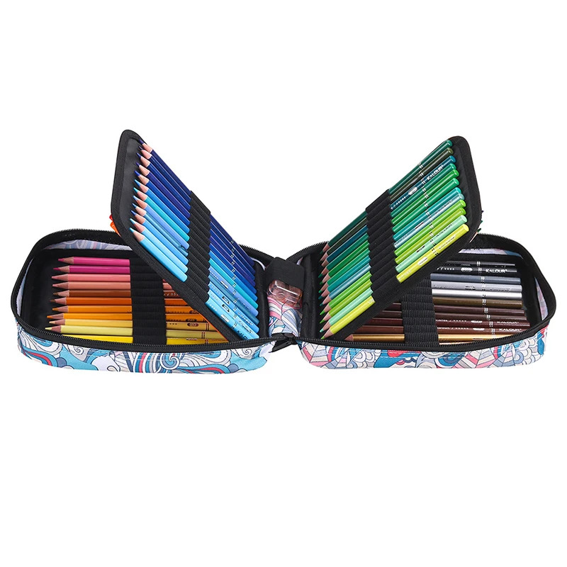 Всі олівці акуратно розташовані у міцному багатобарвному кейсі з блискавкою та ручкою. Він виконаний із щільного канвасу, має 72 індивідуальні відділення та забезпечує надійний захист при перенесенні. Також у наборі є чинка для олівців.