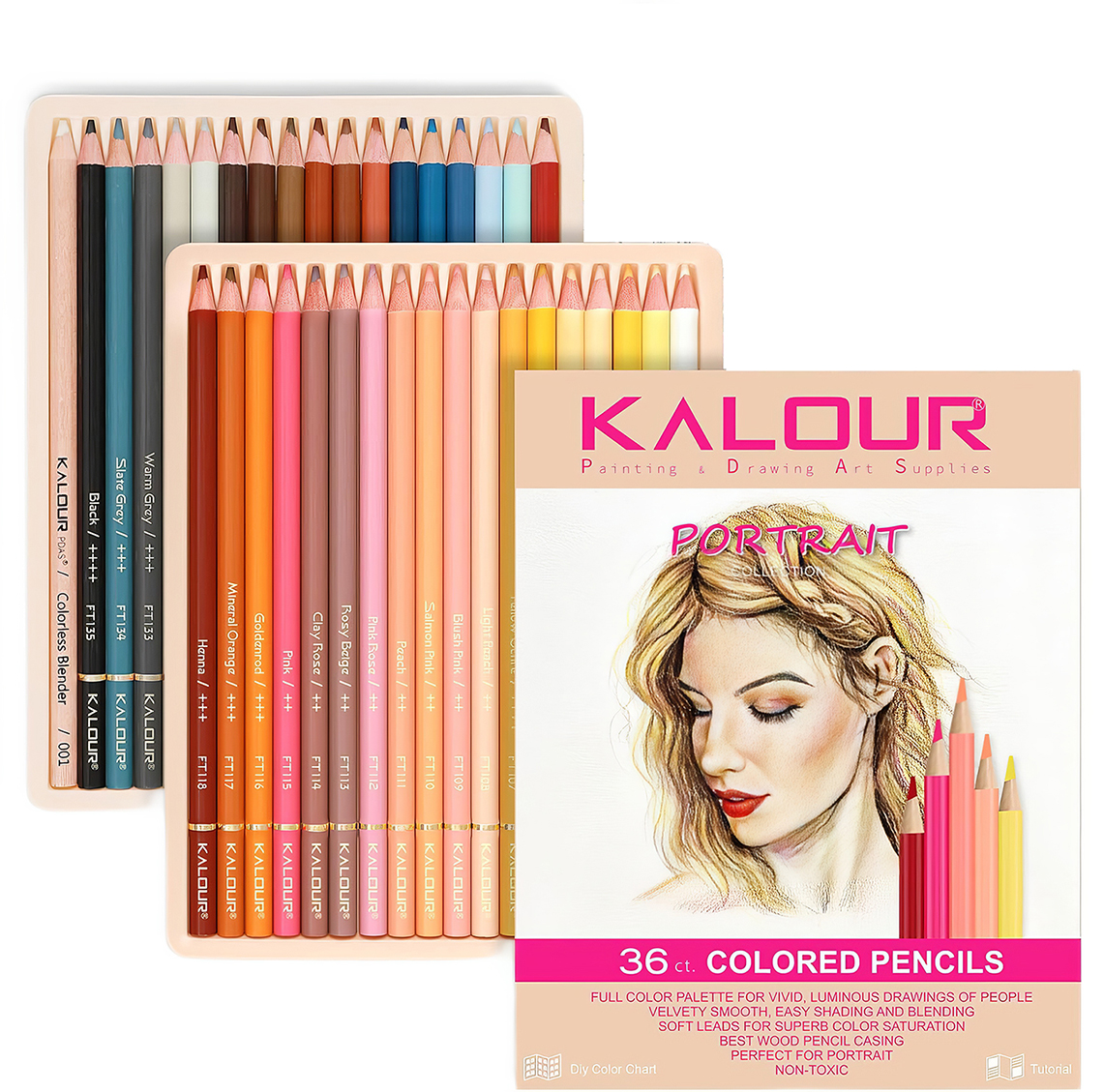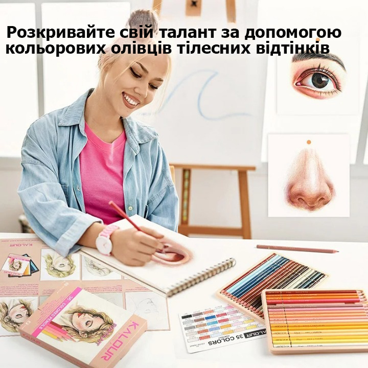Професійний набір кольорових олівців Kalour Portrait – 35 тілесних відтінків для реалістичних портретів.