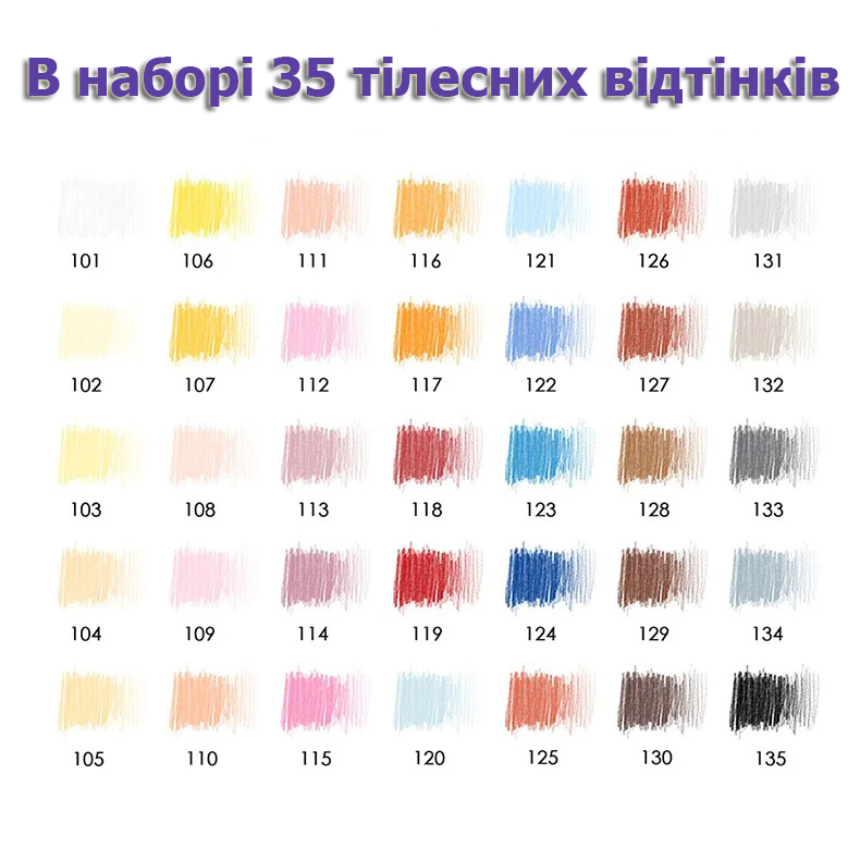 Цей вишуканий комплект із 35 кольорових олівців створений спеціально для художників, які прагнуть передати на папері природну красу людської шкіри. Унікально підібрана палітра тілесних відтінків дозволяє створювати живі, емоційні та реалістичні портрети з плавними переходами та найтоншими нюансами кольору.