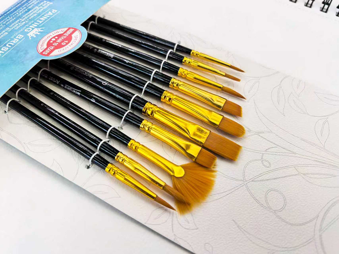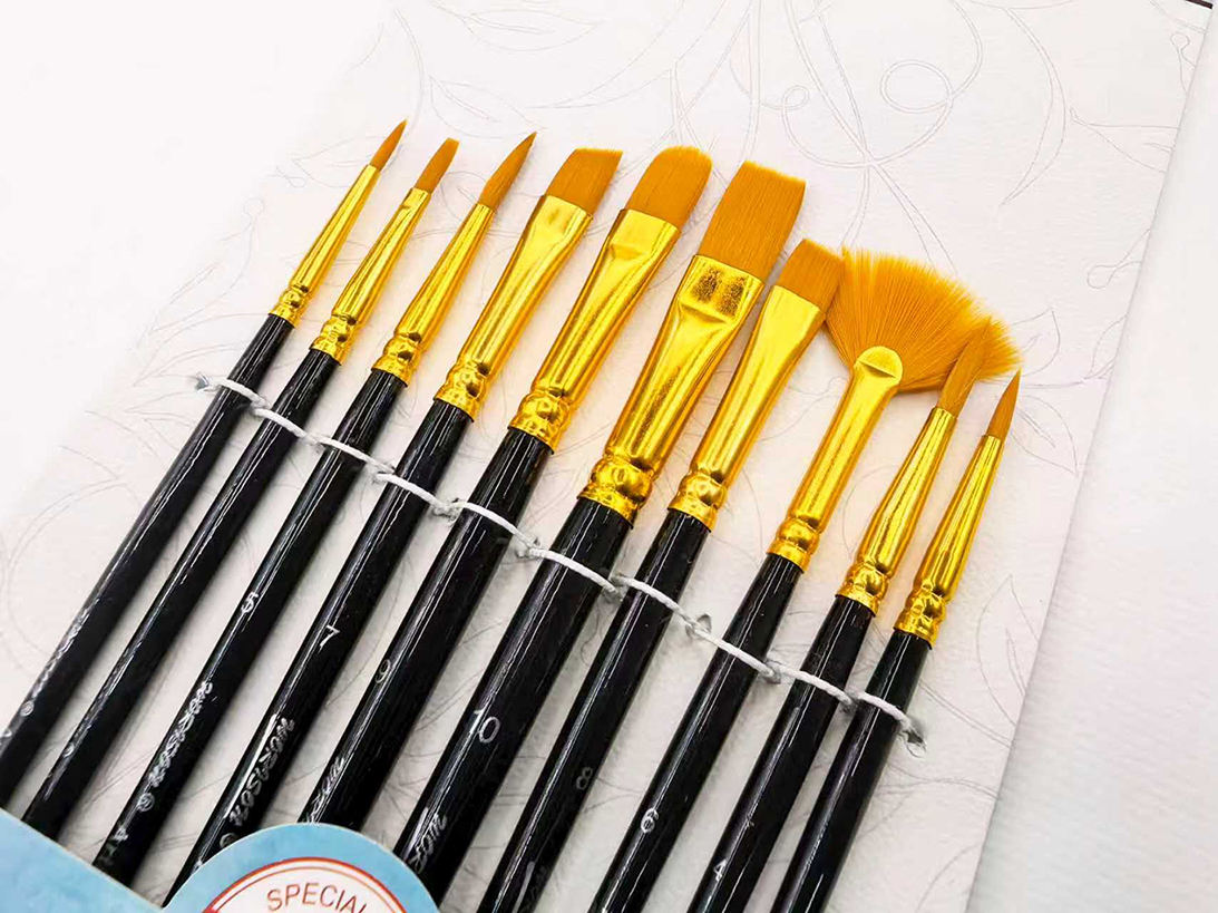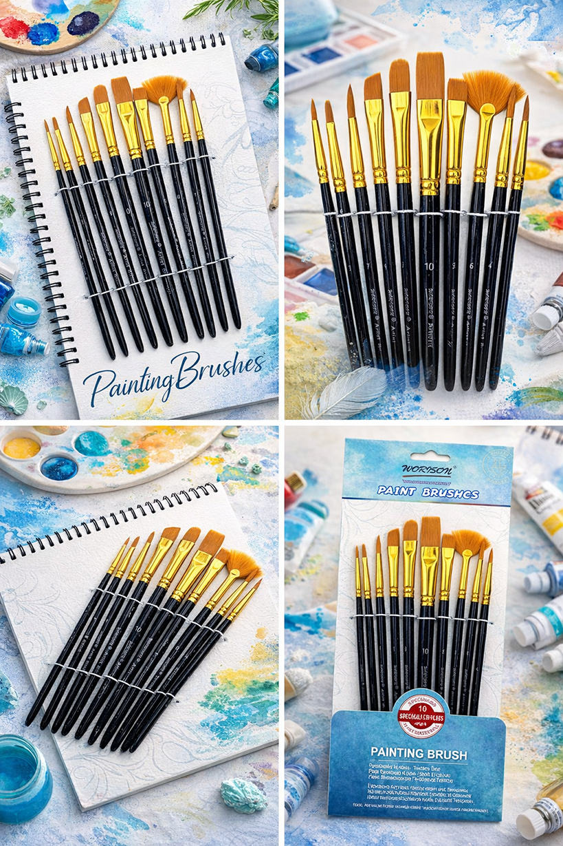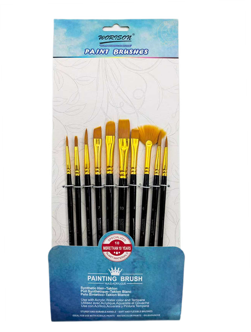 Професійний набір пензлів WORISON із синтетики Taklon – 10 пензлів для акрилу, акварелі та гуаші. Різні форми, зручні ручки, довговічність та точний контроль мазка для творчості.