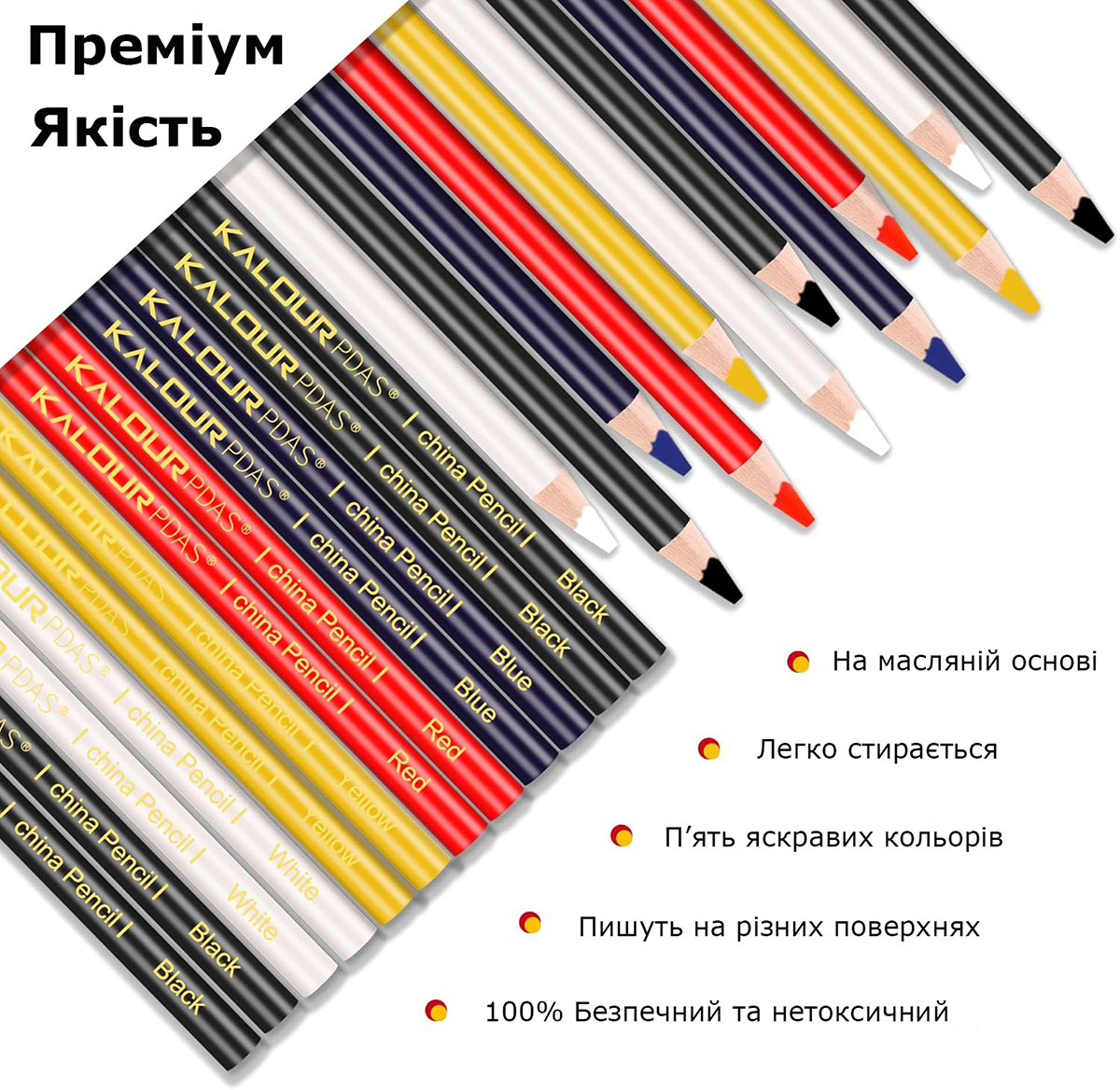 Универсальный набор масляных карандашей KALOUR — это практичное решение для разметки, рисования и маркировки на самых разных поверхностях. Идеально подходит как для профессионального использования, так и для творчества дома, в мастерской или на производстве.