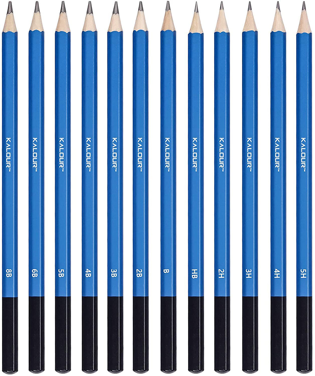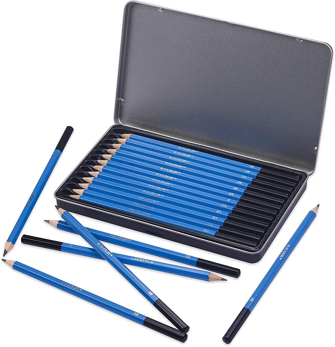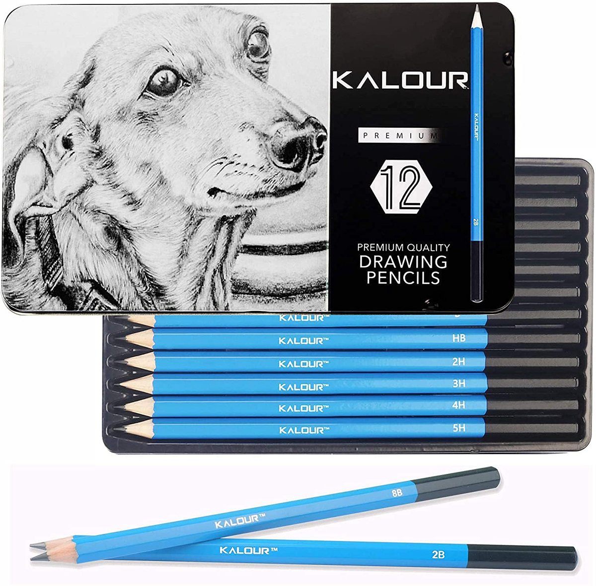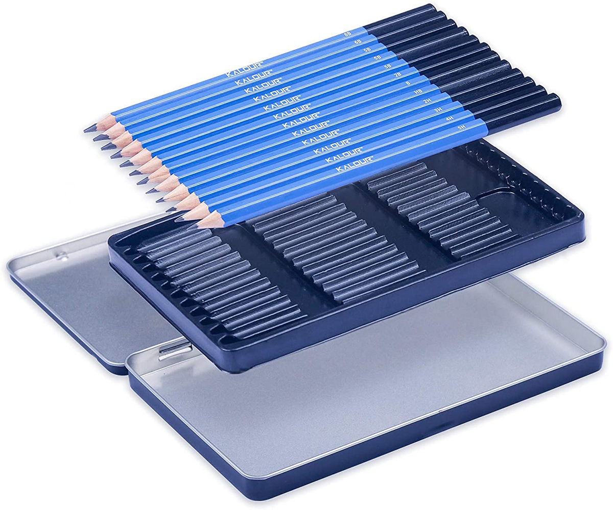 Профессиональный набор графитовых карандашей KALOUR Premium 8B–5H, 12 штук в металлическом пенале