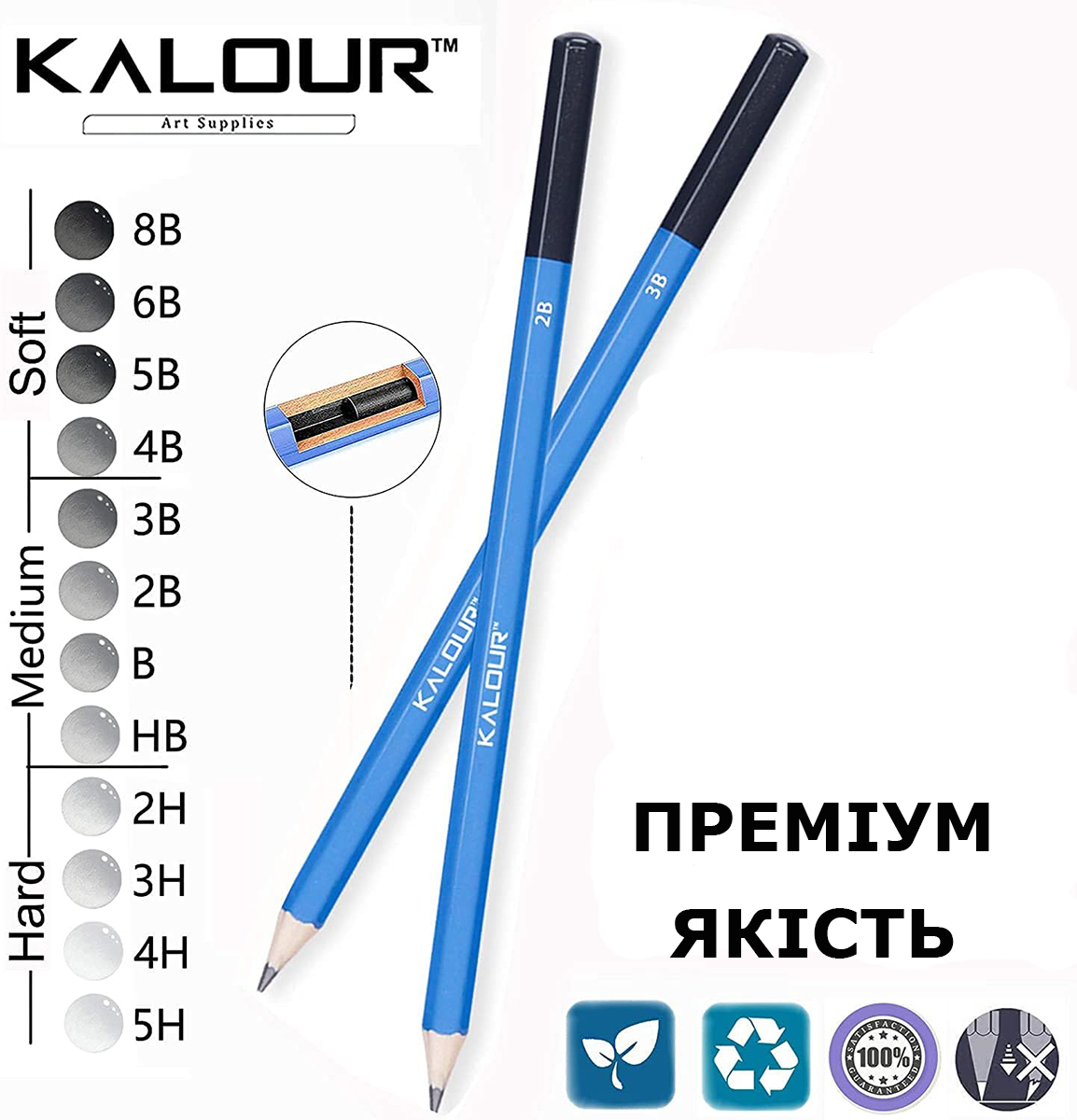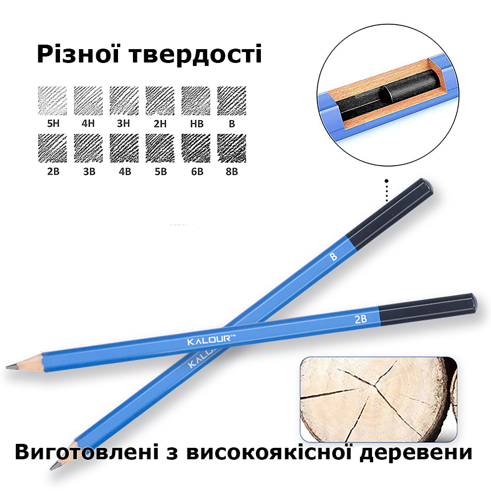 Твердость: 5H, 4H, 3H, 2H, HB, B, 2B, 3B, 4B, 5B, 6B, 8B