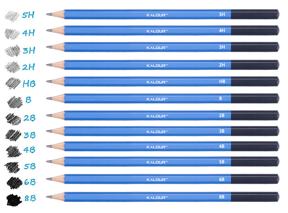 12 степеней твердости: 5H–8B