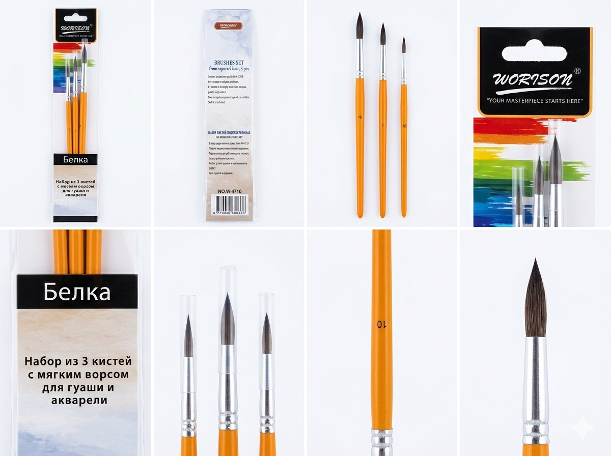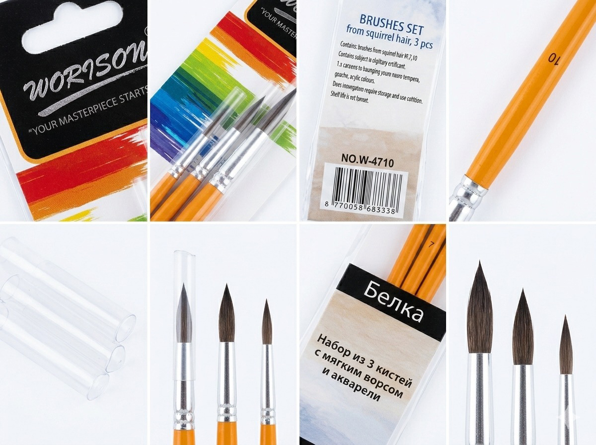 Набір пензлів WORISON "Білка" - це ідеальний вибір для художників, які цінують м`якість, контроль та чистоту мазка. У комплект входять три круглі пензлі найзатребуваніших розмірів — №4, №7 та №10, що дозволяє виконувати як найтоншу деталізацію, так і широкі заливки.